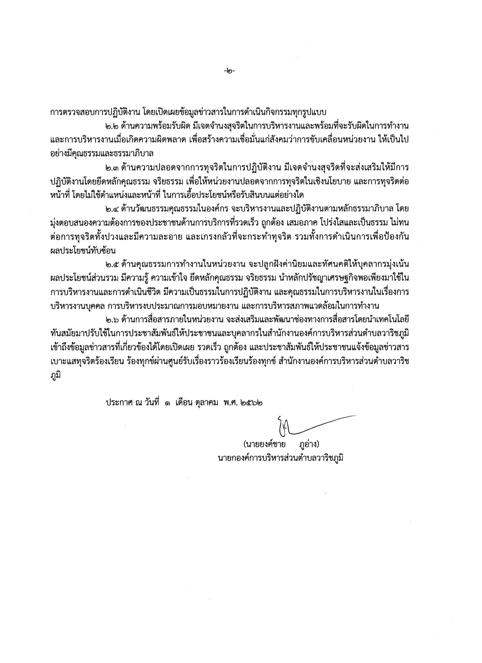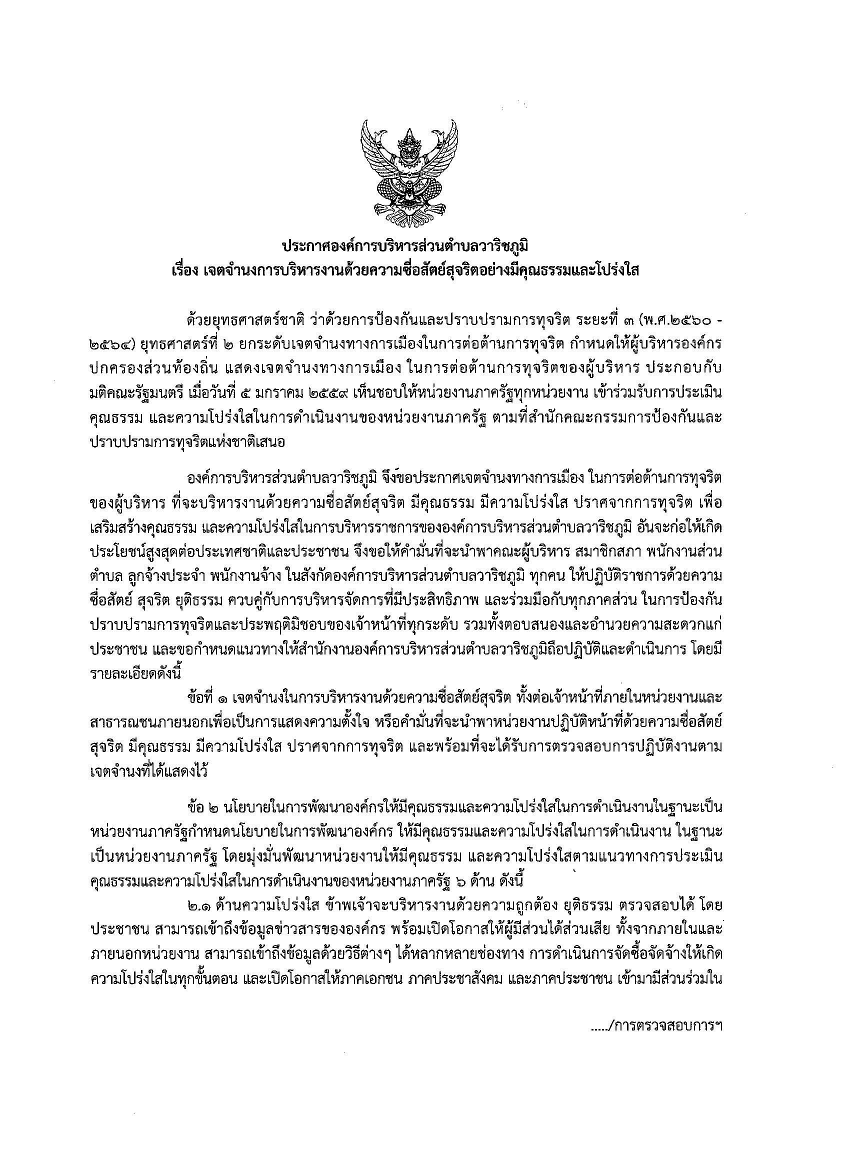 ประกาศการเสริมสร้างวัฒนธรรมสุจริต โปร่งใ