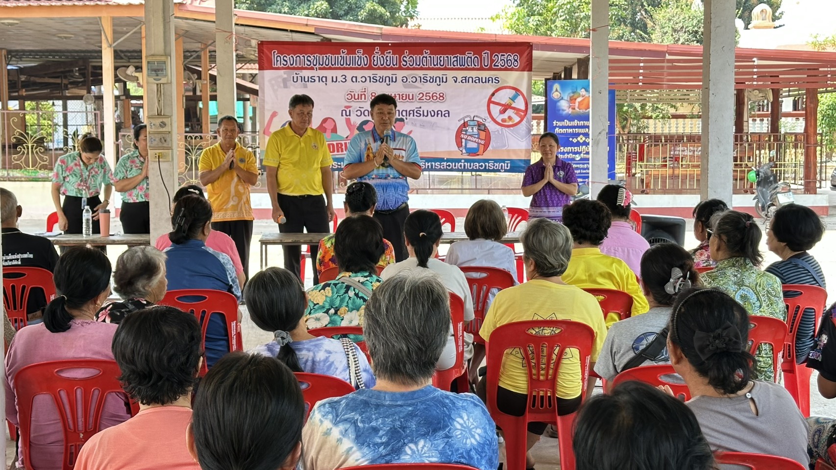 นายยงค์ชาย ภูอ่างนายก องค์การบริหารส่วนตำบลวาริชภูมิเป็นประธานเปิดงานโครงการ ชุมชนเข้มแข็งยั่งยืนร่วมต้านยาเสพติด โดยมีนางจุฑามาส อาจทุมมา ผอ. กองสาธารณสุข ส.อบต. ศรีสวาท หัศจรรจ์ ผู้ใหญ่บ้านผู้นำชุมชนและชาวบ้านเข้าร่วมเปิดโครงการในครั้งนี้ ณศาลาอเนกประสงค์วัดพระธาตุศรีมงคลบ้านธาตุ หมู่ 3