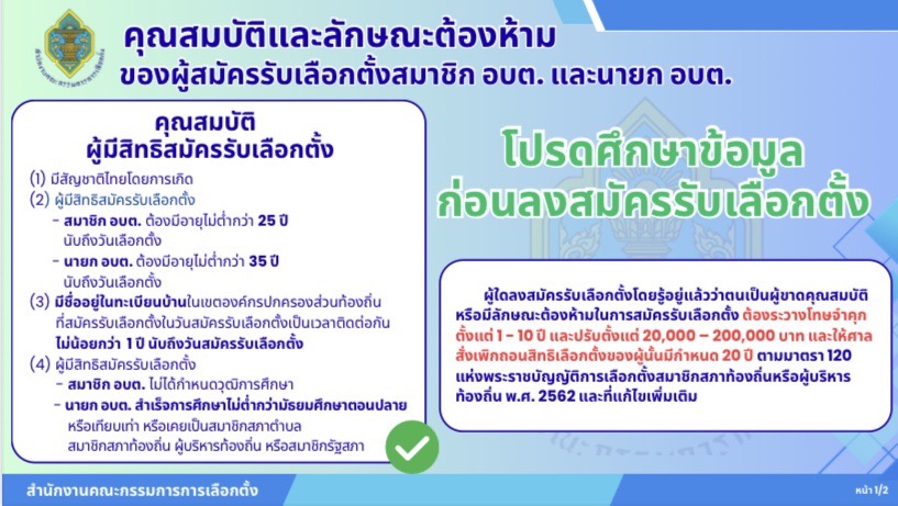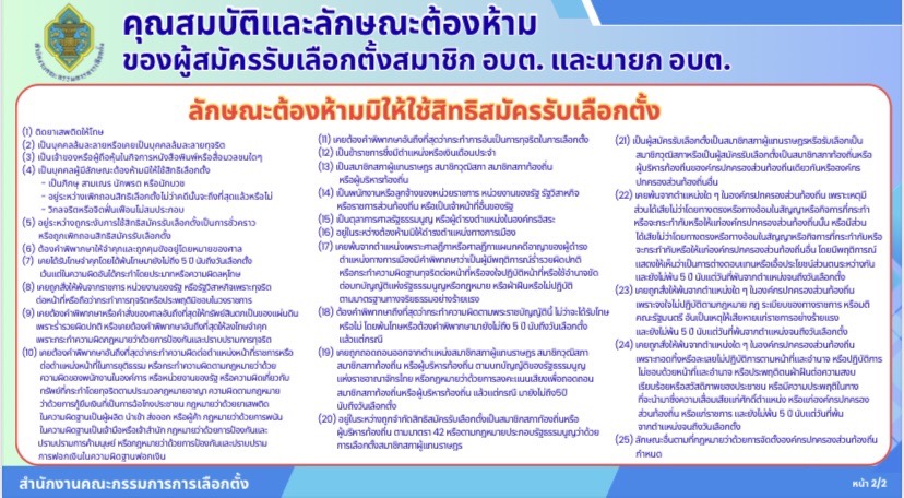 Posted in ข่าวประชาสัมพันธ์ การประชาสัมพันธ์คุณสมบัติและลักษณะต้องห้ามของผู้สมัครรับเลือกตั้งสมาชิกสภาองค์การบริหาร ส่วนตำบลและนายกองค์การบริหารส่วนตำบลวาริชภูมิ admin