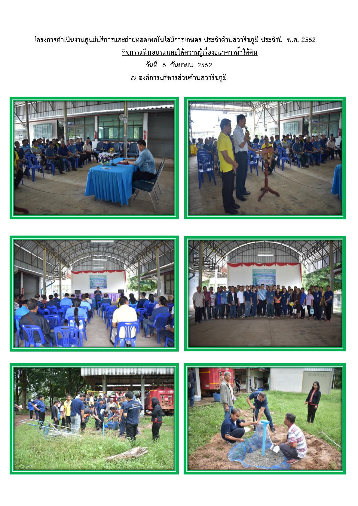 โครงการดำเนินงานศูนย์บริการและถ่ายทอดเทคโนโลยีการเกษตร ประจาตำบลวาริชภูมิ ประจำปี พ.ศ. 2562