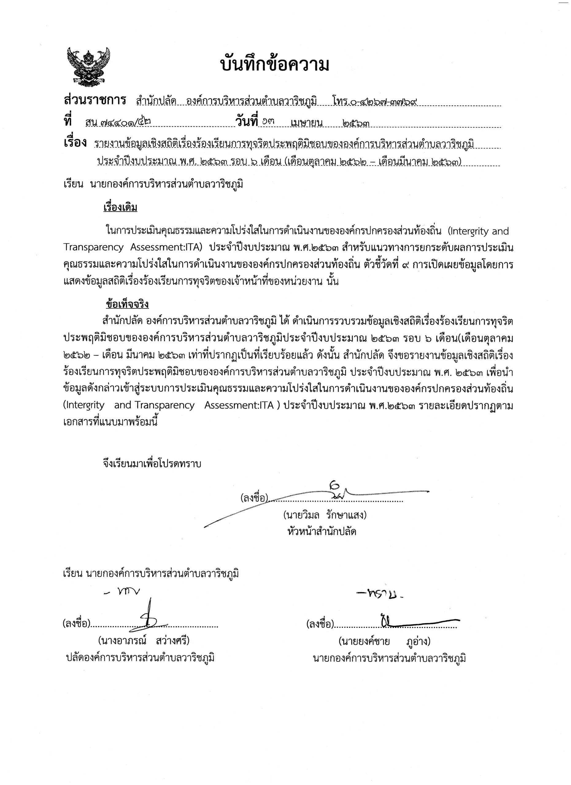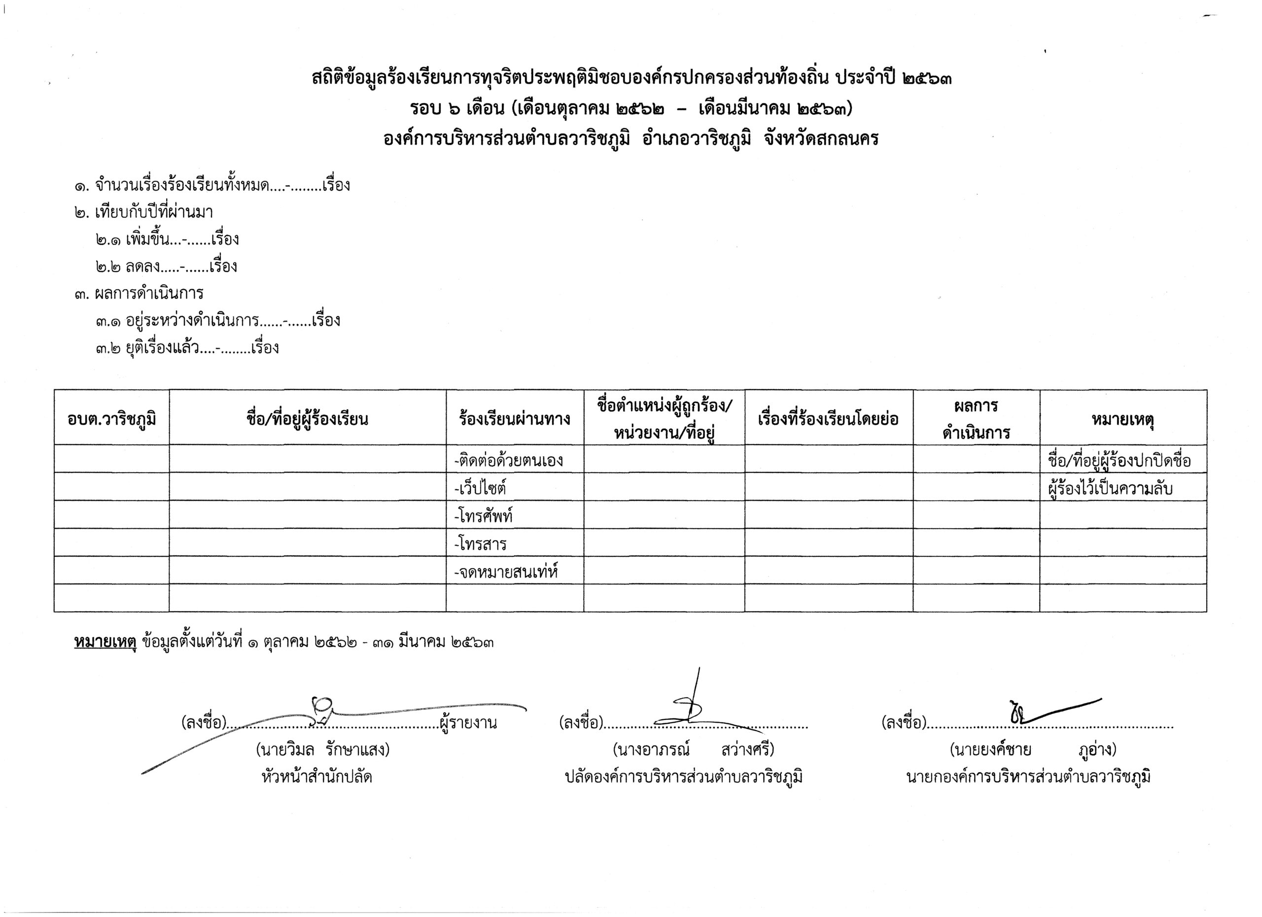 • รายงานการกำกับติดตามการดำเนินการป้องกันการทุจริตรอบ 6 เดือน